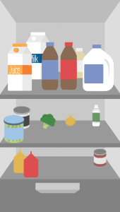 Once the plan is set in place, the next step is to build the assets that will be used in our animation. A majority of the assets were built within one single Illustrator file all separated in layers. Some assets can be viewed below, including the character, contents of the refrigerator, tomatoes, turkey dinner plate, front door and the stove